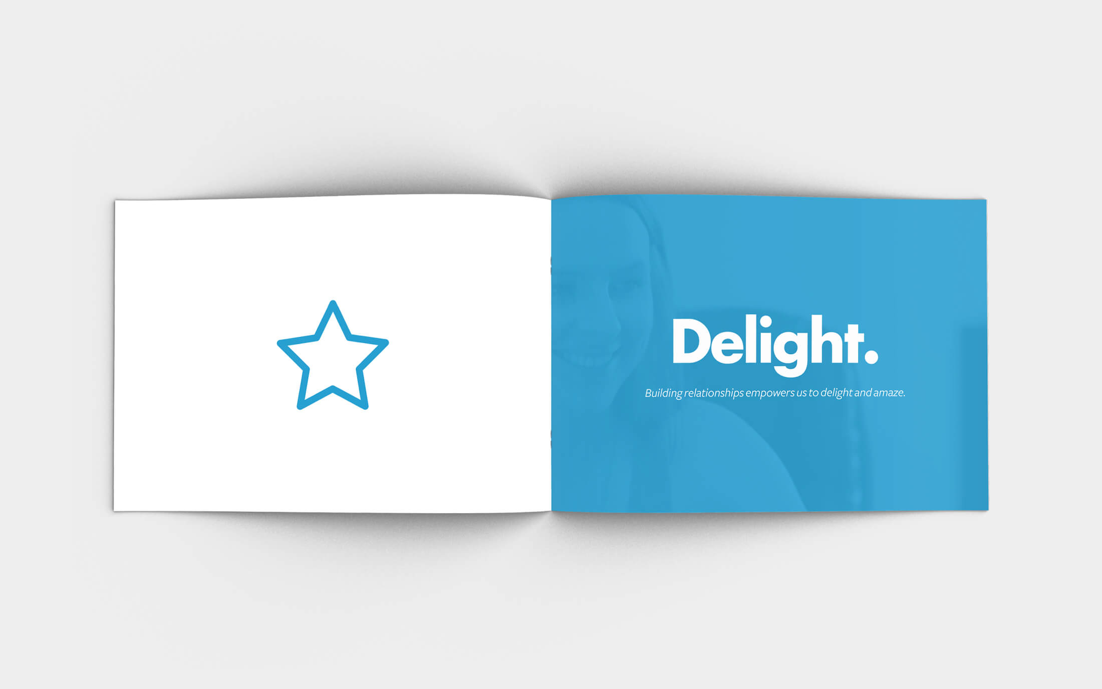 A unified blend of smart layout, clear messaging, vibrant color, whimsical photography and iconography provided a genuine, human, approach. Constructed with perforated pages, a blue sharpie, each owner was encouraged to interact. The book was designed to be a unique and personalized experience.