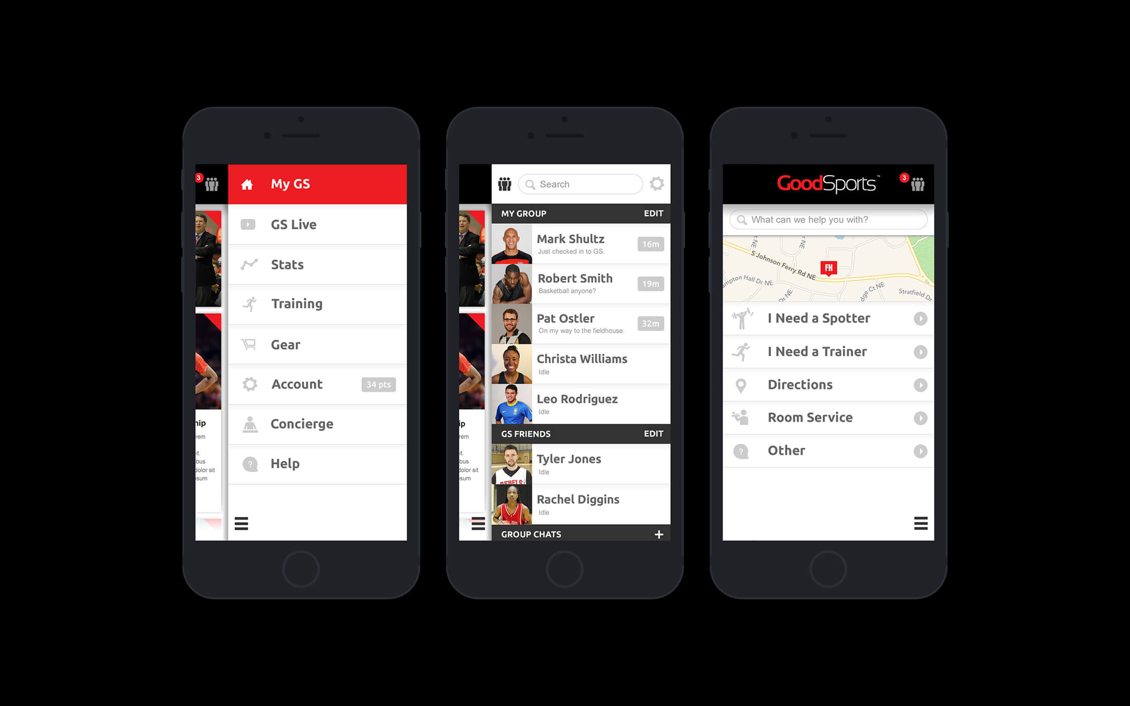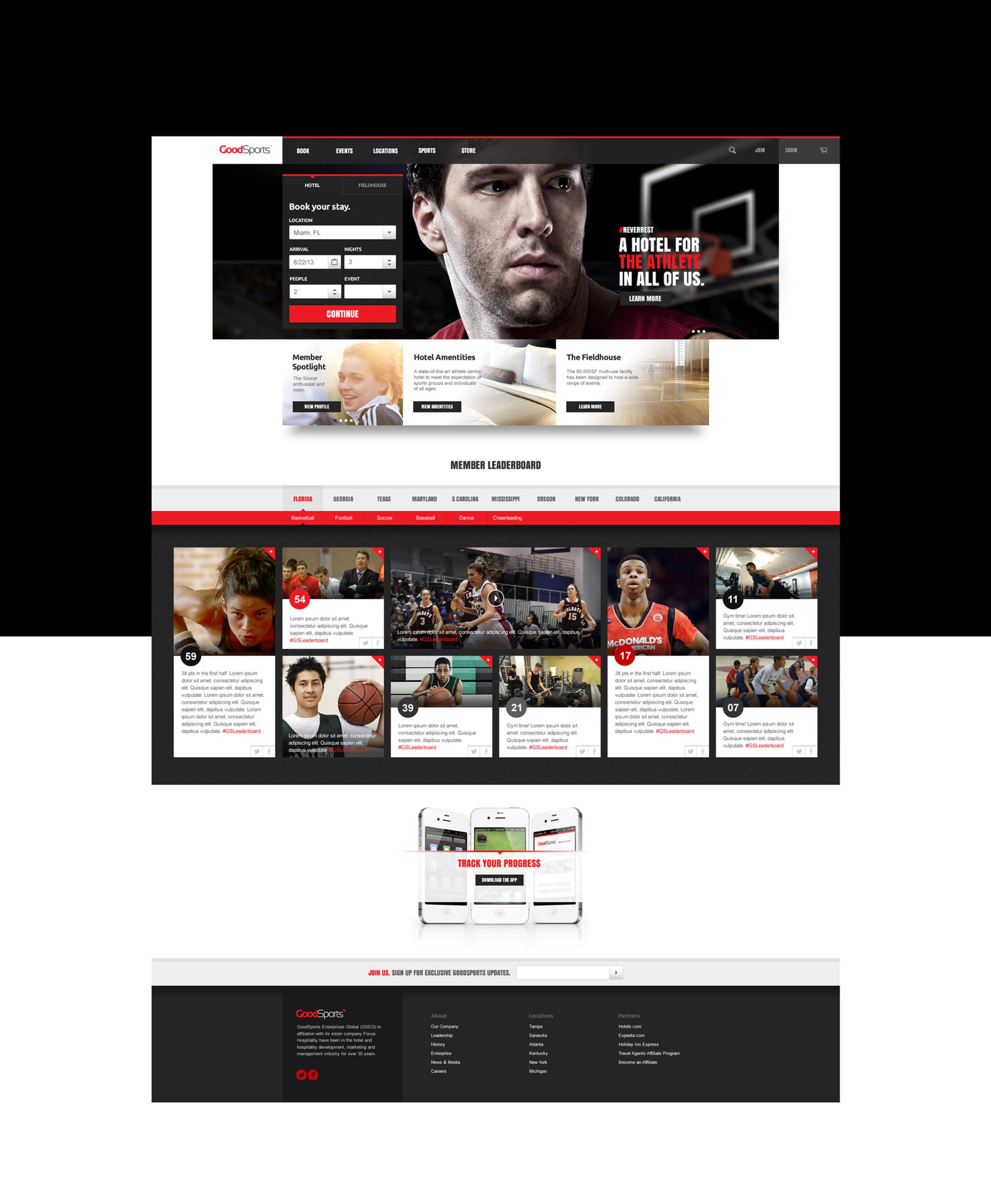 The GoodSports experience is heavily dependent on customer loyalty, powered by a robust mobile app. The mobile app was designed for community member interaction, location based check-ins, physical trainer requests, room service...etc. The iPad app enhances internal management capabilities for trainers, concierge, front desk, and employees. The website was designed for easy booking, ecommerce, and membership access for guests and athletes to always stay competitive.