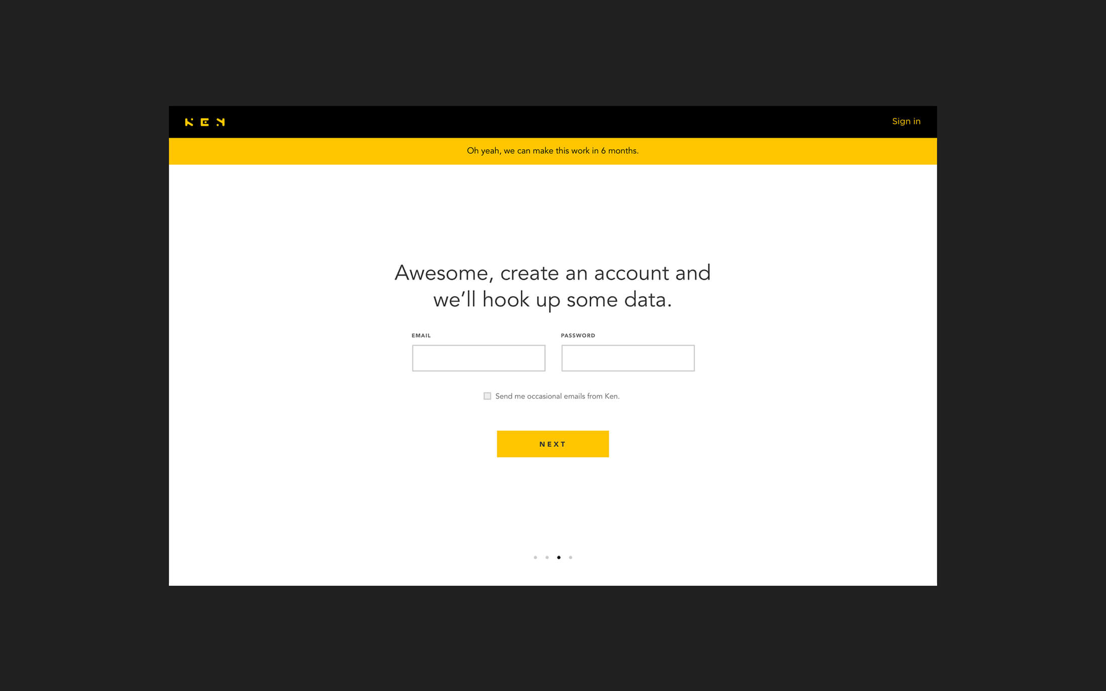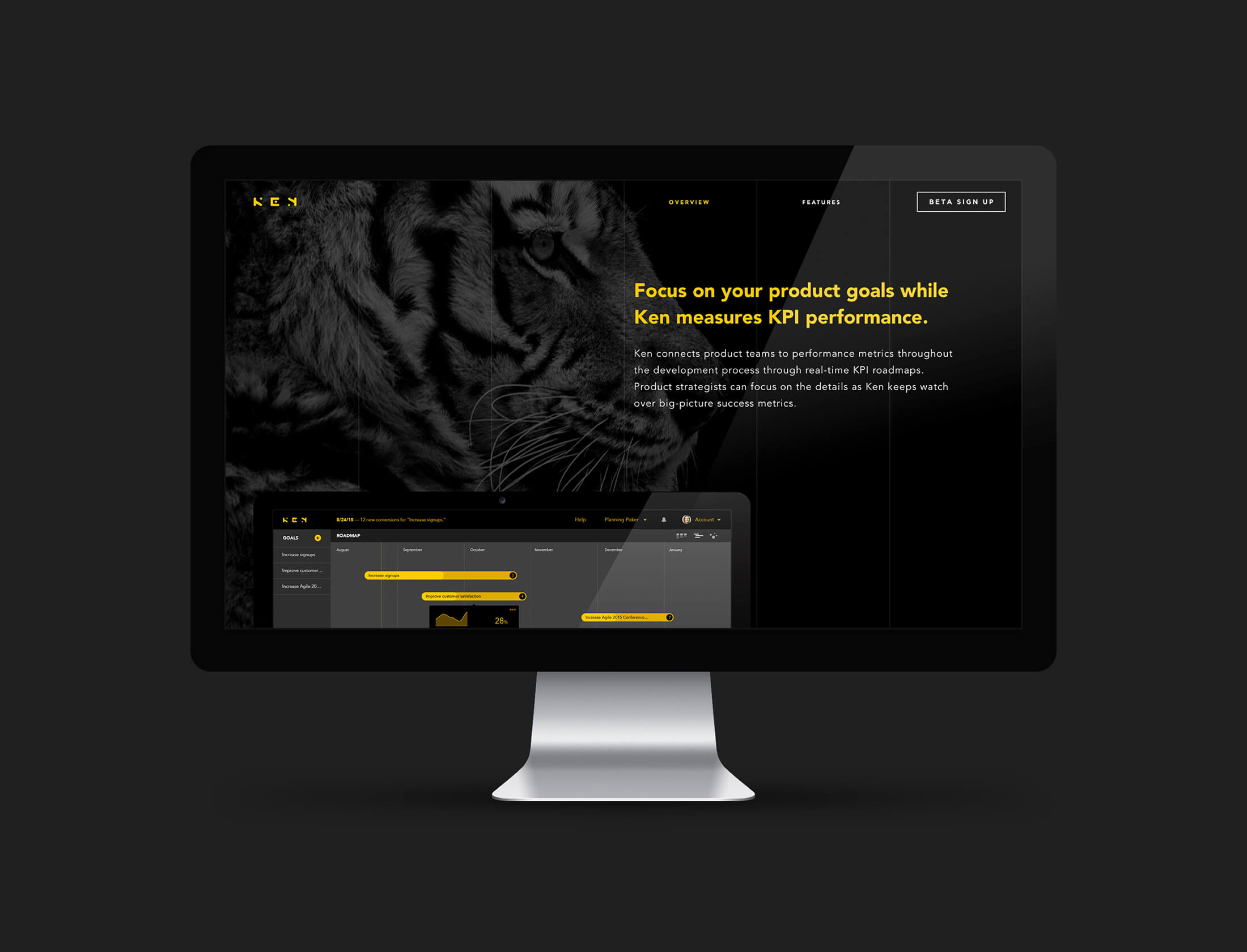 Ken connects product teams to performance metrics throughout the development process through real-time KPI roadmaps. Product strategists can focus on the details as Ken keeps watch over big-picture success metrics.Ken guides you through the goal-setting process, tying tangible goals to impactful product features. Once goals and features are determined, Ken plots a visual product roadmap so all team members can stay in the loop.