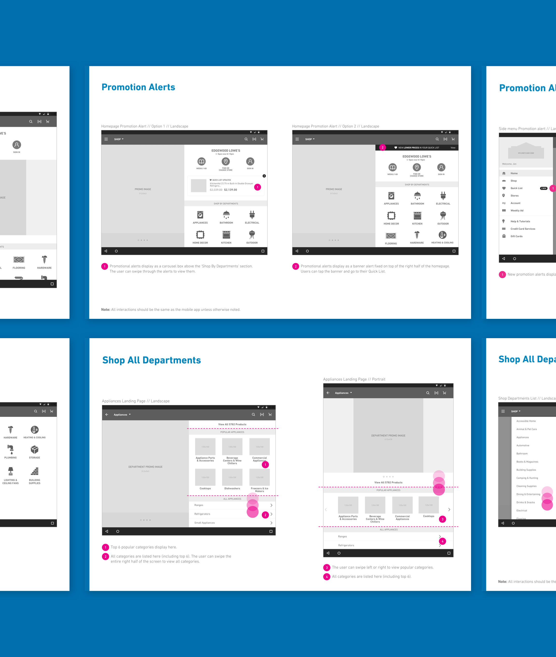 My role on this project was to design the full tablet experience (wireframes and annotations). I guided two Interaction Designers along the way, while meeting directly with a Lowe’s product manager, business analyst, and software engineers.