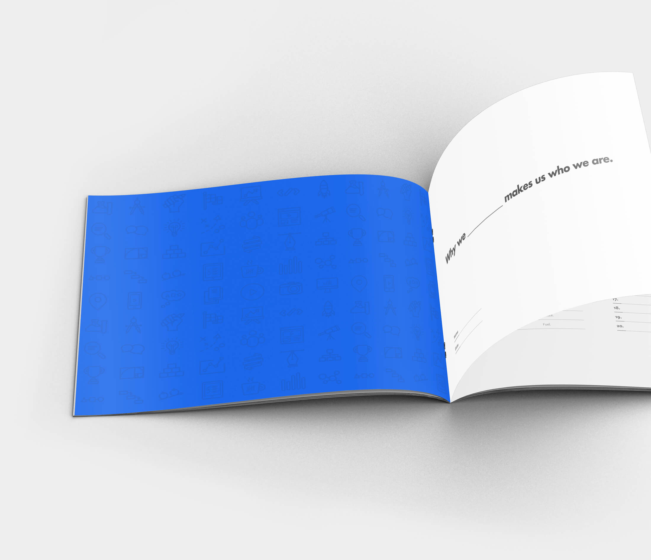 A unified blend of smart layout, clear messaging, vibrant color, whimsical photography and iconography provided a genuine, human, approach. Constructed with perforated pages, a blue sharpie, each owner was encouraged to interact. The book was designed to be a unique and personalized experience.