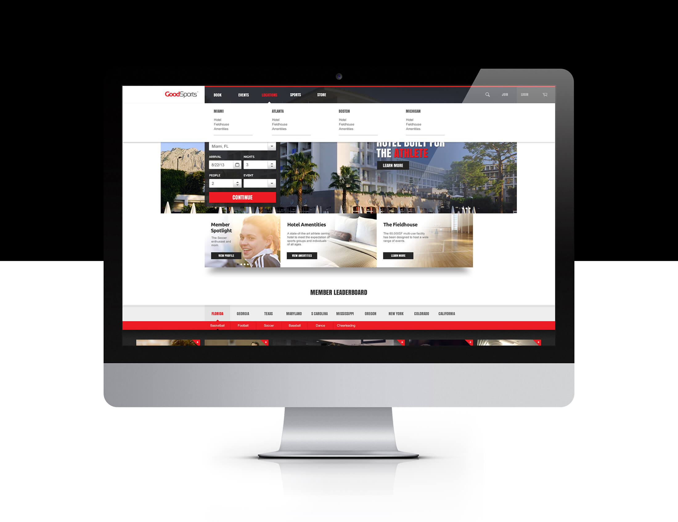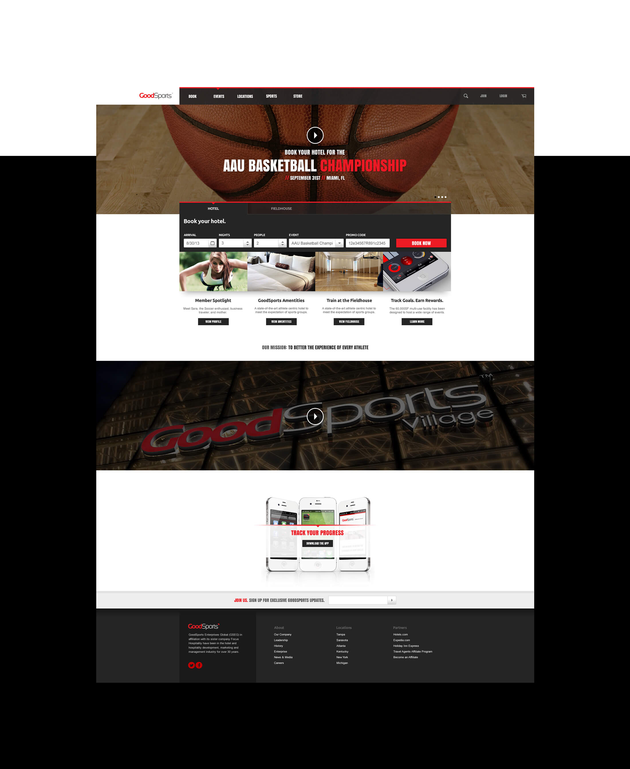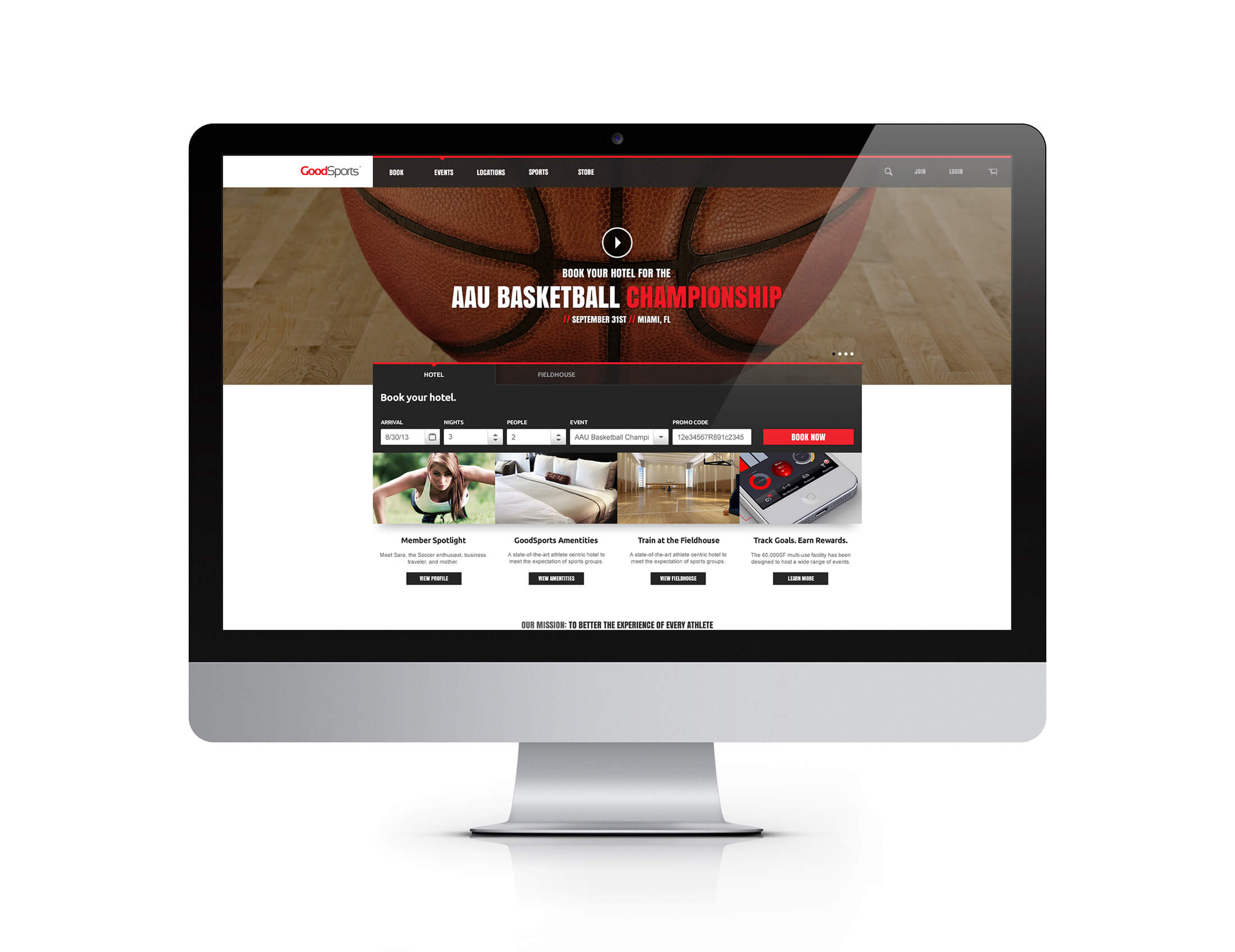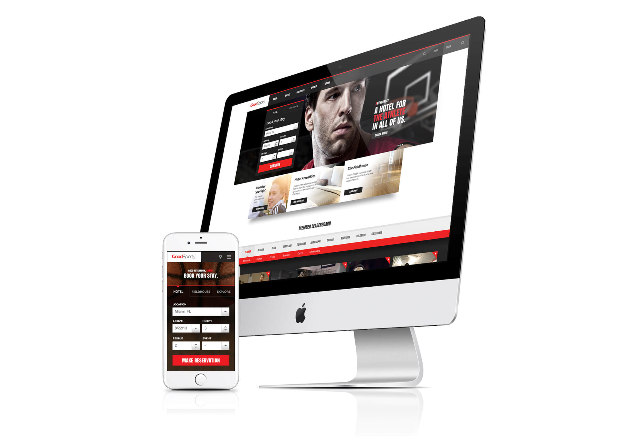 The GoodSports experience is heavily dependent on customer loyalty, powered by a robust mobile app. The mobile app was designed for community member interaction, location based check-ins, physical trainer requests, room service...etc. The iPad app enhances internal management capabilities for trainers, concierge, front desk, and employees. The website was designed for easy booking, ecommerce, and membership access for guests and athletes to always stay competitive.