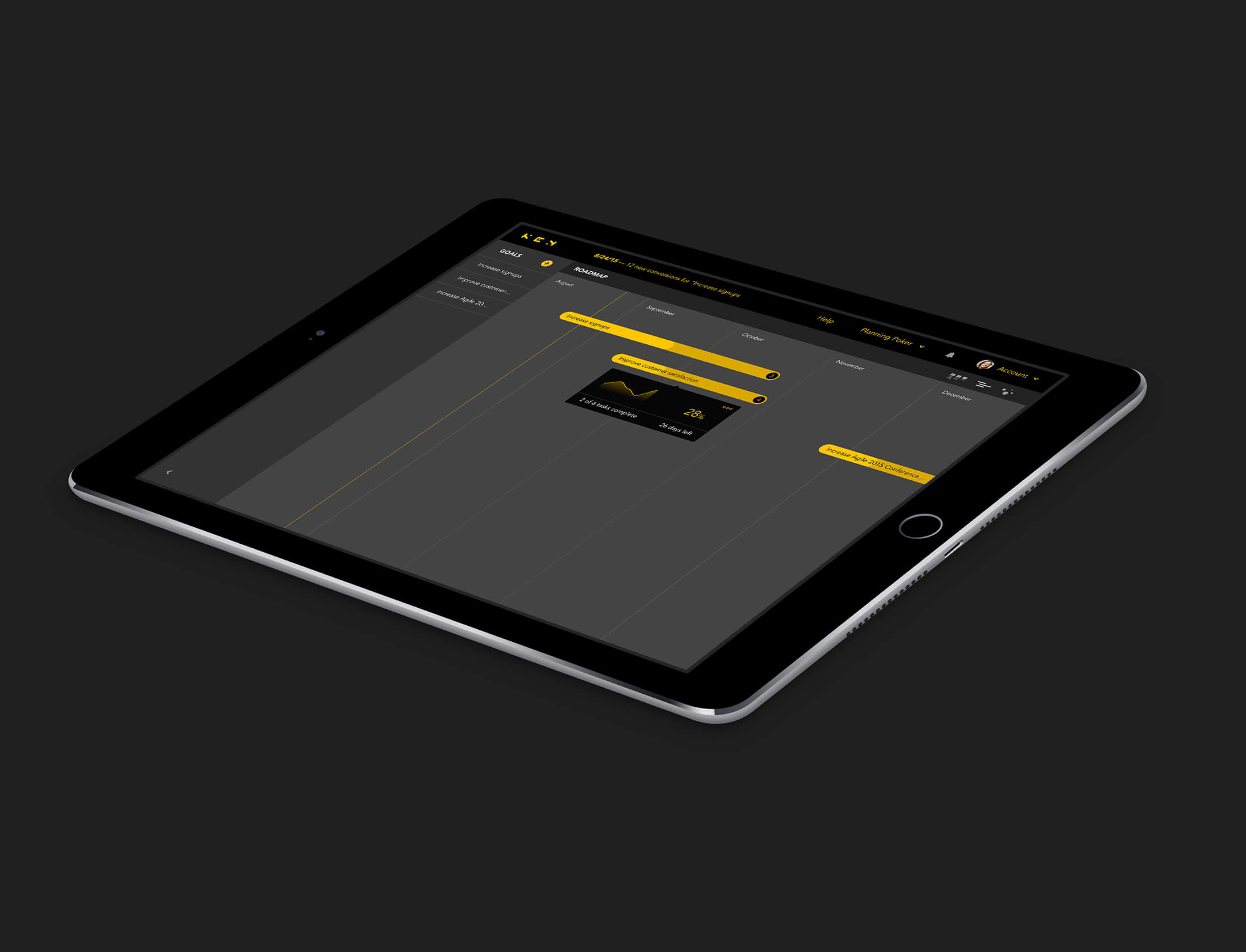 Ken connects product teams to performance metrics throughout the development process through real-time KPI roadmaps. Product strategists can focus on the details as Ken keeps watch over big-picture success metrics.Ken guides you through the goal-setting process, tying tangible goals to impactful product features. Once goals and features are determined, Ken plots a visual product roadmap so all team members can stay in the loop.