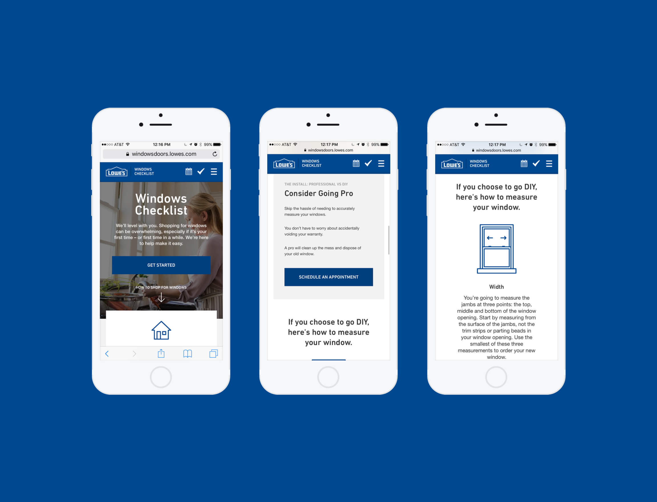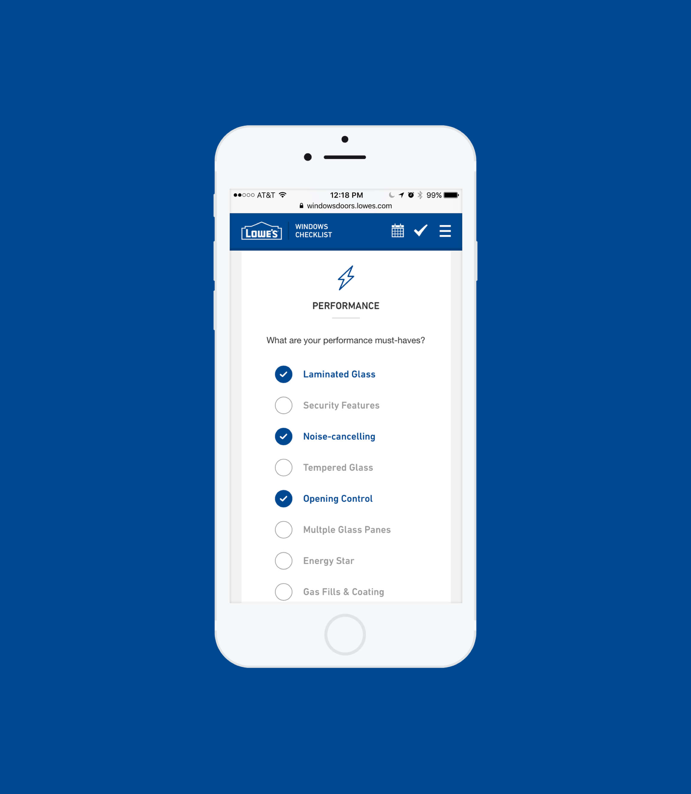 Through customer research and stakeholder workshops, we realized that shopping for windows and doors can be an overwhelming experience. With high uncertainty, users preferred going in-store to truly evaluate the look and feel of their window or door. As the majority of users start their research online, we identified key entry points into the experience. We created a simple, responsive guide that provided a balance between form and function, style and utility. Through a lightweight experience, we broke down primary and secondary buying factors. We focused on translating highly technical terms into user-centric language. Allowing customers to take a mobile checklist along with them, we provided a “soft landing” into a local Lowe’s store where they could confidently share ideas and buying preferences with a Lowe’s expert.