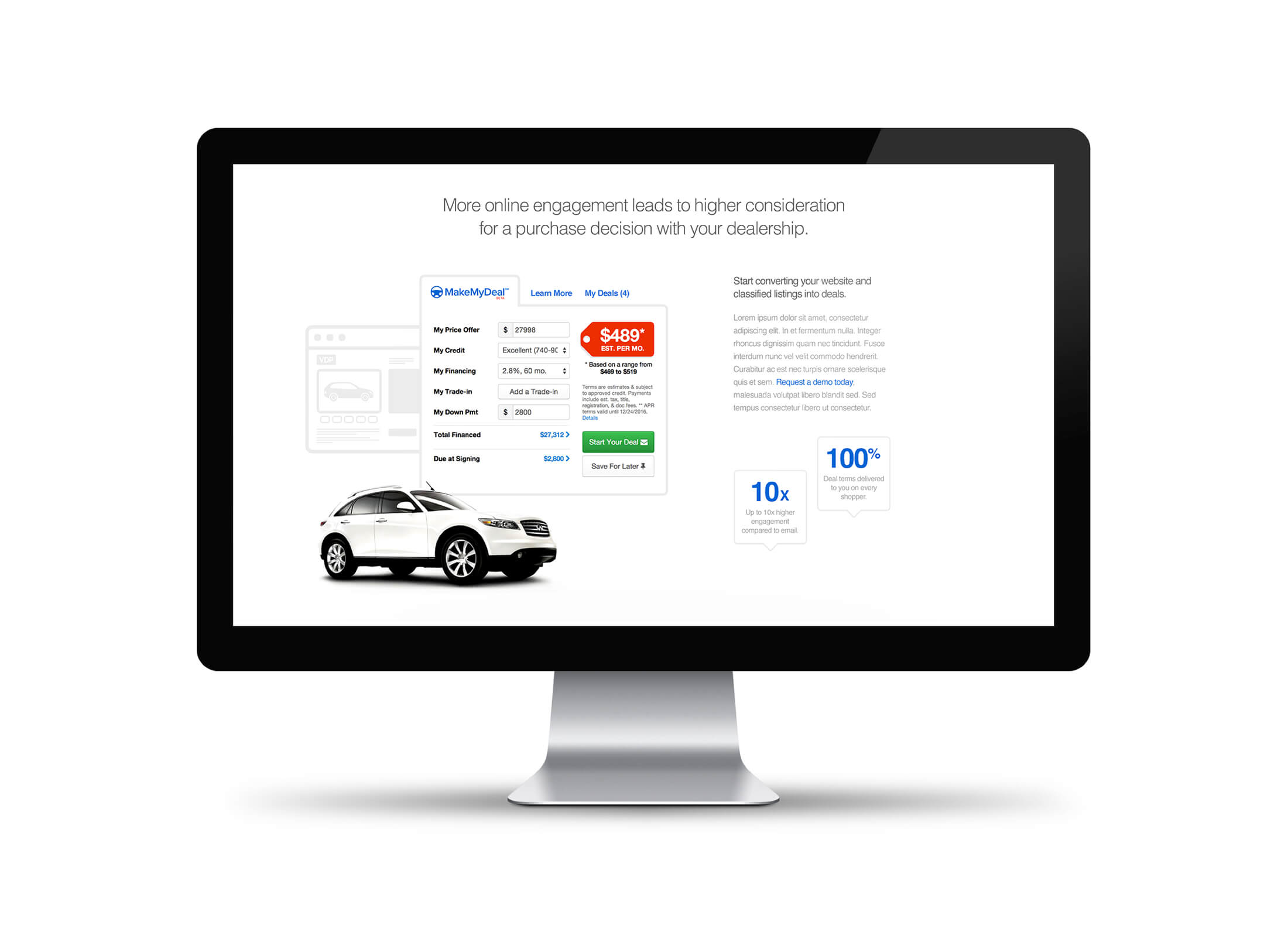 Early 2014, Autotrader discovered a new product they wanted to bring to market quickly. Through extensive research, rapid prototyping, and user testing, our team created an online system that allowed shoppers to start negotiating finance and/or lease deals, down payment, trade-in, credit, and much more. Saving hours at a dealership and receiving such positive responses among both shoppers and dealers, the platform has been adopted by hundreds of dealerships across the US.